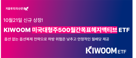 키움투자자산운용은 오는 21일 ‘KIWOOM 미국대형주500월간목표헤지액티브 ETF’를 유가증권시장에 신규 상장한다고 20일 밝혔다.