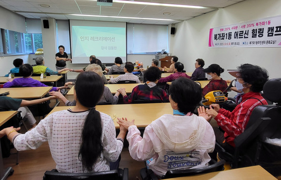 서울 서대문구 북가좌1동(동장 김종일)은 최근 동 지역사회보장협의체가 주 1회 4주 동안 어르신 20명을 대상으로 힐링캠프을 운영해 호평을 받았다고 21일 밝혔다.