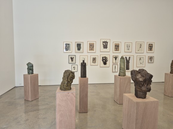 이번 개인전 ‘그의 겹쳐진 순간들’에서 정현은 작업의 시작점이었던 ‘인간’으로 회귀하여 이를 다시 이어 간다. 최초 공개되는 브론즈 두상 신작에서 흙을 사방에서 힘껏 쳐 압착한 형상은 강하게 다져진 내면의 에너지를 상기시키는 한편, 백색 표면은 다른 것이 더해지지 않은 인간 본연의 상태를 환기한다. 인물상의 두 눈 속에는 지나간 삶의 무수한 장면들이 교차하는 찰나의 순간이 담겨있다. 이와 함께 본관 전시장에 리드미컬하게 배치된 1990년대 초~2000년대 중반의 두상 조각들은 인간 존재가 겪어낸 삶의 시간과 굴곡을 성찰하게 한다.