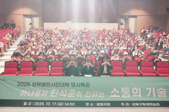 이날 행사에는 이승로 성북구청장이 참석해 “한석준 아나운서님의 초청 특강이 단순한 강연을 넘어, 구민이 서로의 이야기에 귀 기울이고 사람과 사람 사이의 진정한 소통의 가치를 되새기는 시간이 되길 바란다”며 “앞으로도 성북열린시민대학을 통해 구민이 일상에서 배움을 실천하고 삶의 변화를 경험할 수 있도록 다양한 프로그램이 운영되도록 적극 지원하겠다”고 말했다.