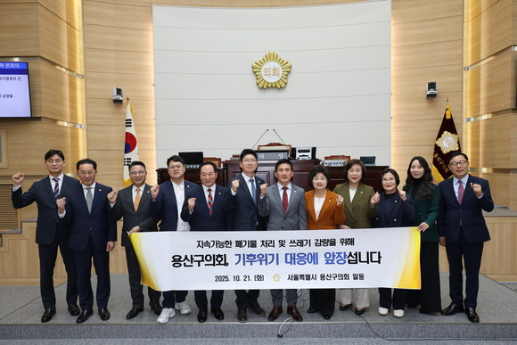 서울 용산구의회(의장 김성철)는 10월 21일 제301회 임시회 제1차 본회의에서 ‘용산구 지속가능한 폐기물 처리 및 쓰레기 감량을 위한 결의안’을 만장일치로 의결했다.