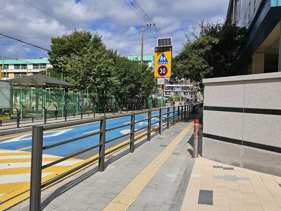 이에 더해, 보행자와 차량의 이동 동선 분리와 무단횡단 예방이 필요한 구간에는 ‘보행자 방호울타리’의 설치를 추진하고 있다. 어린이·장애인 보호구역 4곳(182m)에는 이미 설치를 마쳤고, 일반구역 4곳(620m)에는 11월까지 설치를 완료할 계획이다.