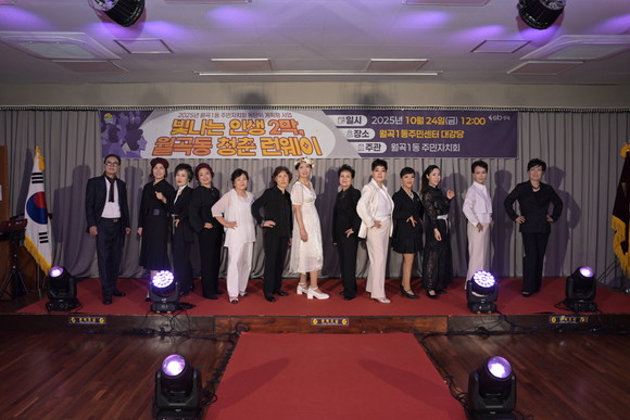 서울 성북구 월곡1동 주민센터 대강당이 지난 24일 시니어들의 런웨이로 변신했다. “톱 포즈, 앤 턴!”이라는 구호에 맞춰 무대에 선 시니어 모델들의 당당한 걸음에 환호와 박수가 쏟아졌다.