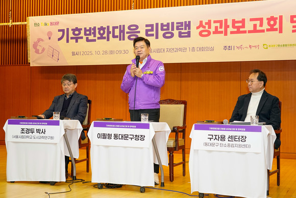 서울 동대문구(구청장 이필형)는 28일 서울시립대학교 자연과학관에서 ‘기후변화대응 리빙랩 성과보고회 및 정책포럼’을 개최했다고 밝혔다.