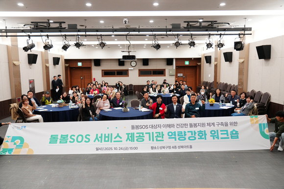 서울 성북구(구청장 이승로)가 지난 24일 오후 3시 성북구청 성북아트홀에서 ‘2025년 성북구 돌봄SOS 서비스 제공기관 역량강화 워크숍’을 개최했다. 이번 워크숍은 돌봄SOS 서비스 제공기관 28개소의 담당자 50명을 대상으로 서비스 품질 향상과 돌봄 인력의 전문성 강화를 목적으로 마련됐다.