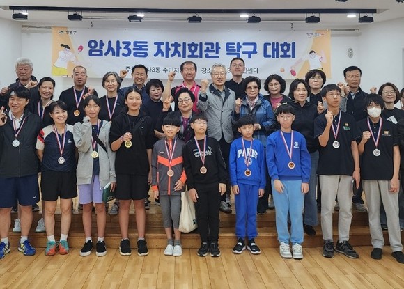 이어 10월 25일에는 암사3동 주민센터 5층 강당에서 자치회관 프로그램의 일환으로 탁구대회가 열려 성인을 포함한 어린이와 청소년 8개 팀이 참가한 가운데 준결승과 결승전이 진행되었다.