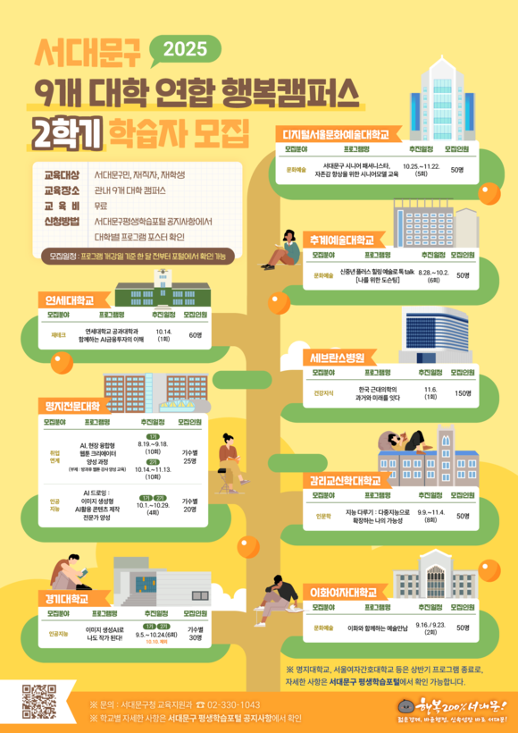주민 건강증진과 올바른 의학정보 확산을 위해 구와 세브란스병원이 협력해 마련했으며 전문 의료진의 강의와 일상생활에 도움이 되는 체험 프로그램들로 꾸며진다.