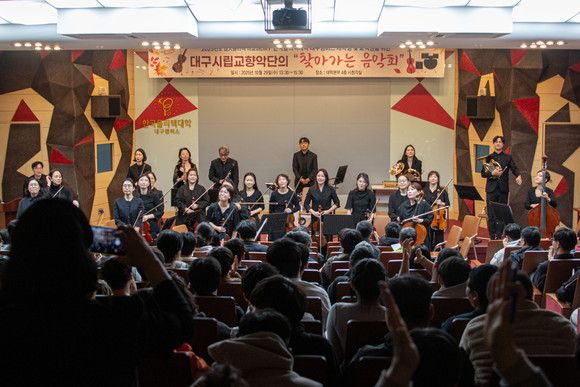 대구문화예술진흥원(이하 ‘진흥원’) 산하 대구시립교향악단(음악감독 겸 상임지휘자 백진현)이 10월 29일(수) 한국폴리텍대학 대구캠퍼스(학장직무대행 노진호, 이하 ‘폴리텍대학’) 본부 4층 시청각실에서 올해 마지막 ‘찾아가는 음악회’를 성료했다. 이번 공연은 진흥원과 폴리텍대학이 지난 4월 체결한 업무협약(MOU)의 일환으로, 기술과 예술의 융합을 통해 폴리텍대학 학생과 임직원들에게 문화예술 향유의 기회를 확대하기 위해 기획된 프로그램이다.