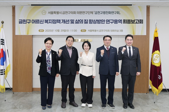 한편, ‘금천고령친화연구회’의원들은 ▲복지 현황 조사 및 현장 방문 ▲관련 문헌 및 선행연구 검토 ▲국내외 우수사례 분석 ▲담당 공무원 인터뷰 등을 통해 연구를 진행해 왔다. 이번 연구 결과는 향후 금천구의회의 입법 및 정책 역량 강화와 고령친화도시 실현을 위한 정책 추진 기반으로 활용될 예정이다.