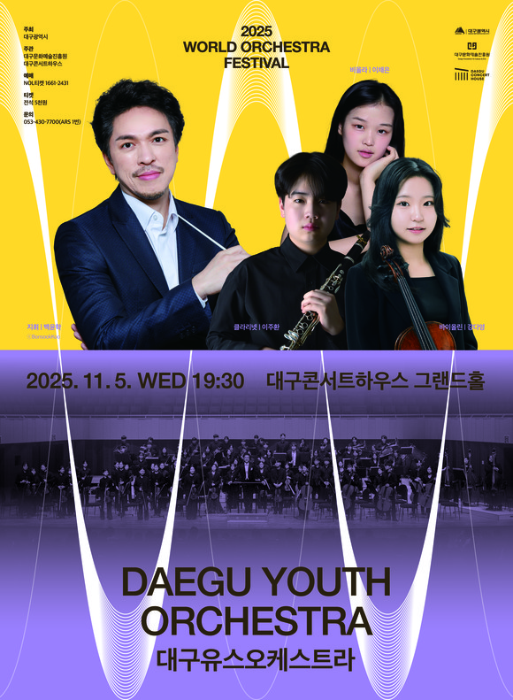 (재)대구문화예술진흥원 대구콘서트하우스(관장 박창근)는 오는 11월 5일(수) 저녁 7시 30분, 그랜드홀에서 <2025 월드오케스트라페스티벌>의 일환으로 대구유스오케스트라의 공연을 개최한다.