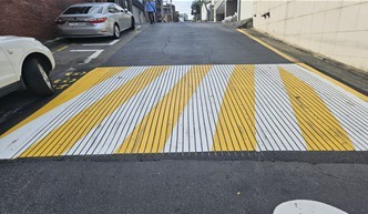 서울프랑스학교는 급경사 내리막길 중간에 위치해 차량 제동이 미흡할 경우 사고 위험이 컸다. 이에 정문 앞 횡단보도 대기공간에는 옐로카펫을 설치해 아이들이 안전한 대기 구역을 쉽게 인식할 수 있도록 했으며, 과속방지턱과 안전펜스도 설치해 차량 접촉 위험을 최소화했다.