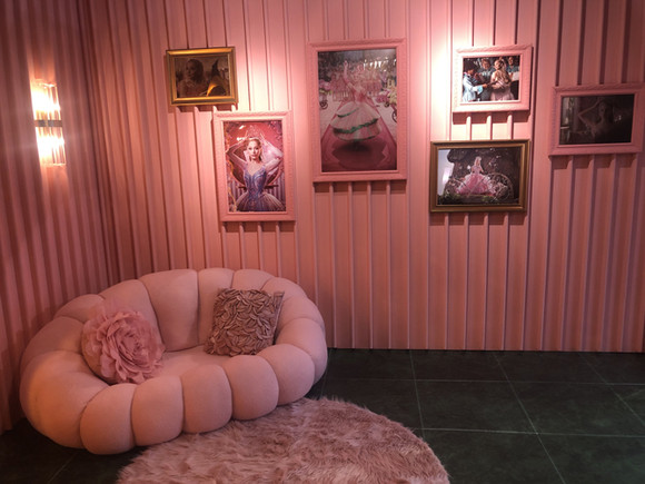 위키드: 포 굿 팝업은 영화 속 주요 무대가 되는 6개의 공간들을 정교하게 구현했다. 팝업 도입부엔 영화의 대형 포스터가 관객의 입장을 환영한다. 이어지는 글린다의 방은 그녀를 상징하는 핑크빛으로 화려하게 꾸며졌다. 글린다의 사진부터 쇼파, 화장대까지 글린다의 일상을 엿볼 수 있게 구성됐다. 이어 별빛 가득한 밤하늘을 볼 수 있는 낭만적인 외부 테라스가 분위기를 차분하게 반전한다.