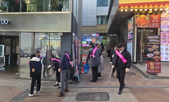 서울 중구는 명동주민센터와 대신증권이 함께 지난 28일 명동관광특구 일대에서 ‘플로깅(Plogging)’ 활동을 진행했다고 밝혔다. 이번 활동에는 명동주민센터와 대신증권 직원 등 40여 명이 참여해 명동 거리 곳곳의 담배꽁초를 수거하며 깨끗한 거리 만들기에 나섰다.