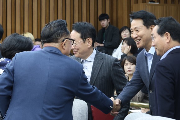 이날 협의회에는 오세훈 서울시장과 유정복 인천시장, 김진태 강원도지사, 김성중 경기도 행정1부지사를 비롯한 주요 간부와 국민의힘 송언석 원내대표, 김도읍 정책위의장, 박형수 예결위 간사 등 당직자들이 참석했다.