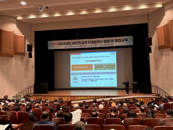 지난 4월 18일 구로구민회관 대강당에서 2025년 상반기 입주자대표회의 운영 및 윤리교육이 진행되고 있다. 사진=구로구청