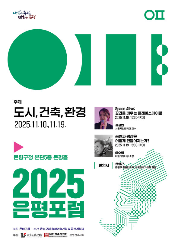 올해로 4회째를 맞는 2025 은평포럼은 ‘조경’과 ‘플레이스메이킹’을 주제로 진행된다. 은평포럼은 직원과 구민들에게 도시, 건축, 환경에 대한 강연을 통해 도시 비전을 제시하고 관심도와 이해를 높이기 위해 마련됐다.
