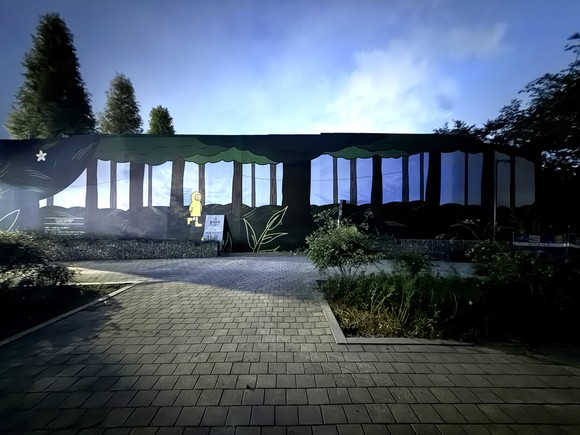 먼저 양재천 빗물펌프장 공사장 가설울타리에 적용한 디자인은 ‘빛나는 공사장 가설울타리 디자인 공모전’ 최우수상 수상작인 「서리풀의 빛, 도시를 물들이다」이다. 이 작품은 공사장 울타리를 감성과 생명력이 스며드는 도시의 ‘쉼표’로 재해석하고, 안개·풀·반딧불이 등 자연의 요소를 따뜻한 빛으로 표현해 아늑하고 감성적인 분위기를 자아낸다.