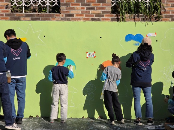 ‘벽화 그리기’는 성동구 소재 기업인 SM엔터테인먼트(이하 SM)의 지역사회 소통과 기여를 위한 민관협력형 ESG 사회공헌 사업이다. 임직원 사회봉사단 SMILE과 성동구가 올해로 3년째 협업하며 지속적인 활동으로 지역사회에 활기를 불어넣고 있다.