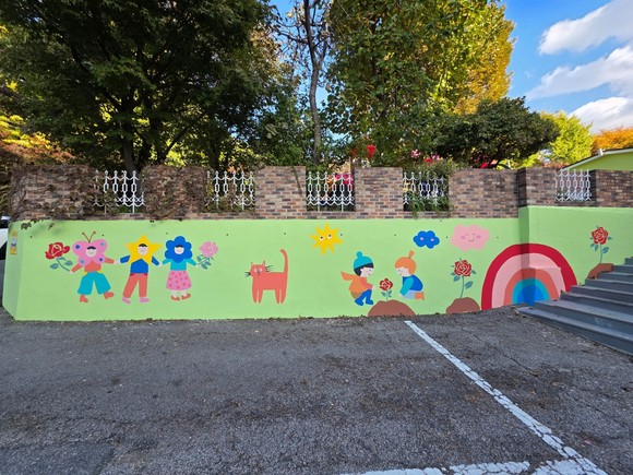 올해는 지난 11월 1일 성동구의 대표 명소인 대현산 장미원 입구에 위치한 구립금봉어린이집의 노후된 외벽과 내벽 일부 등 총 6면에 벽화를 조성했다. 낡고 어두운 느낌을 줬던 벽면이 밝고 활기찬 벽화로 채워지면서 어린이집 아이들과 장미원 방문객에게도 즐거움을 선사하고 있다. 앞서 2023년과 2024년에는 성수동 성일어린이공원 인근의 노후 담벼락을 벽화로 쾌적하게 새단장한 바 있다.