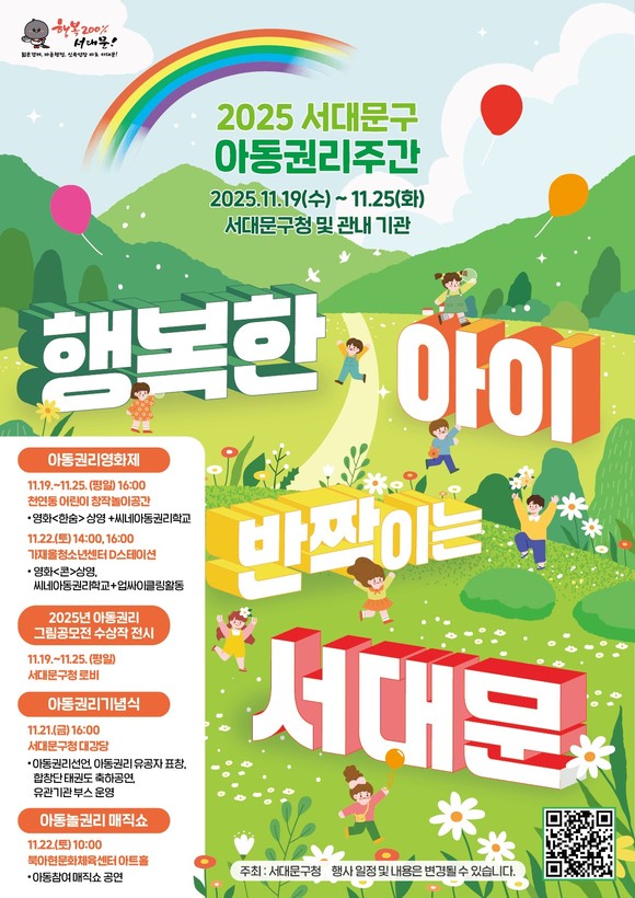 올해는 ‘행복한 아이, 반짝이는 서대문’이란 주제로 아동 존중과 아동의 주체적 참여 문화 확산을 위한 다채로운 프로그램이 마련된다.