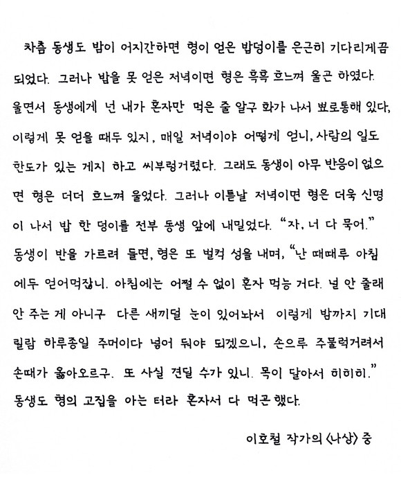 제11회 ‘교보 손글씨 대회’에서 으뜸상을 받은 신예림(17) 학생의 글씨체. 사진=교보문고