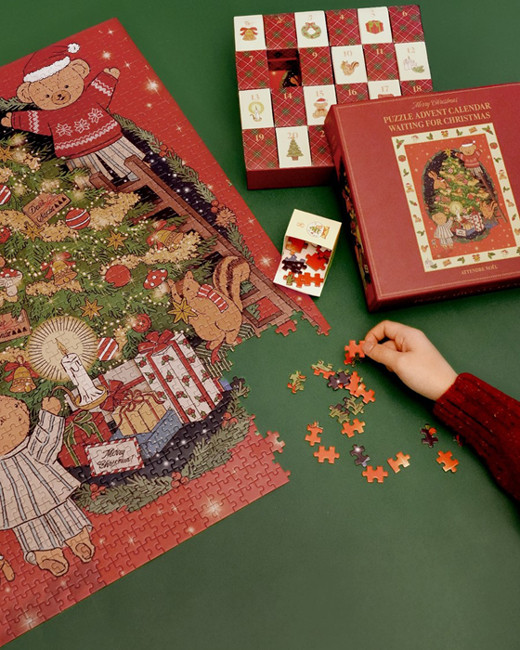 매일 한 칸씩 서랍에 들어있는 퍼즐조각을 꺼내어 맞추면 크리스마스날 전체 그림이 완성되는 ‘퍼즐 어드벤트 캘린더’도 새롭게 출시했다. 벽에 걸어두는 ‘행잉 부직포 어드벤트 캘린더’는 산타가 24개의 선물 상자를 안고 있는 디자인이 특징이다.