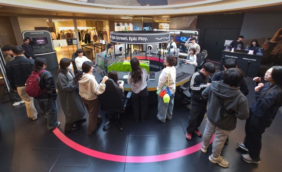 관람객들이 삼성 오디세이 게이밍 모니터와 갤럭시 스마트폰으로 게임 플레이를 경험할 수 있는 '오디세이 게임 스테이션' 팝업 체험존을 방문하고 있다. 사진=삼성전자
