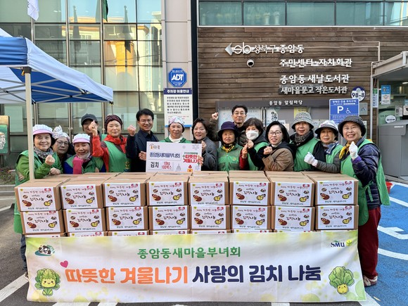 지난 14일 진행된 종암동 ‘사랑의 김장나눔’ 행사에서는 종암동 새마을부녀회(회장 박부임)가 전날부터 절임배추와 양념을 준비해 총 1,000kg(100박스)의 김장김치를 마련했다. 완성된 김치는 관내 독거 어르신 및 중장년 단독가구 등 취약계층에게 순차적으로 전달될 예정이다.