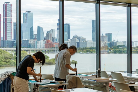 한강 조망이 장점인 마포365구민센터에서 주민들이 서예 교육을 받고 있다. 사진=마포구청