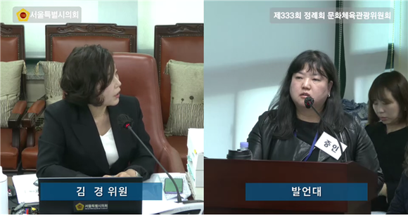 김 의원은 먼저 갱신 불허 통보가 행정처분에 해당하는지 여부를 질문하며 절차 문제를 제기했다. 이는 김 대표 측이 “갱신 불허는 처분에 해당하므로 사전통지·청문 절차가 필요하다”는 취지의 입장을 지속적으로 제기해 온 데 따른 것이다. 김은주 대표는 “저희가 받은 것은 기간만료 안내문뿐이며, 청문 요청에 대해 ‘이 사안은 처분이 아니다’라는 답변을 들었다”고 진술했다. 김 의원은 이러한 절차 부재의 근거에 대해 서울시의 설명을 요청했다.