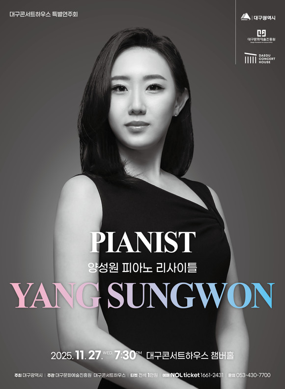 (재)대구문화예술진흥원 대구콘서트하우스(관장 박창근)는 11월 27일(목) 19시 30분, 챔버홀에서 피아니스트 양성원 리사이틀을 개최한다. 이번 공연은 깊이 있는 해석과 탁월한 기교로 관객들의 폭넓은 사랑을 받아온 양성원이 선보이는 정통 클래식 프로그램으로, 쇼팽, 베토벤, 하이든, 라흐마니노프 등 시대를 대표하는 작곡가들의 명작을 한 무대에서 감상할 수 있는 공연이다. 본 공연은 피아니스트 양성원의 음악 세계를 더욱 가까이 느낄 수 있는 자리이기도 하다.
