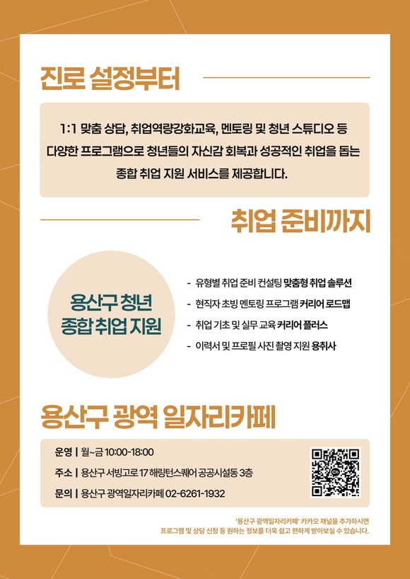 박희영 용산구청장은 “취업 문제 해결은 ‘청년이 행복한 용산’을 만들어가는 과정에서 가장 중요한 과제 중 하나”라며, “청년들에게 실질적인 도움이 될 수 있는 사업과 공간을 지속적으로 마련해 나가겠다”고 전했다.