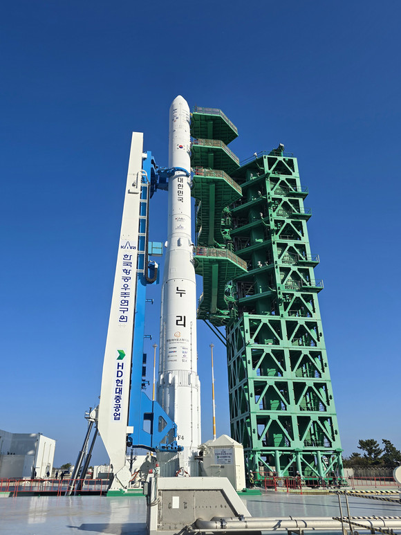 HD현대중공업이 구축한 발사대에서 발사 준비를 마친 누리호. 사진=HD현대중공업