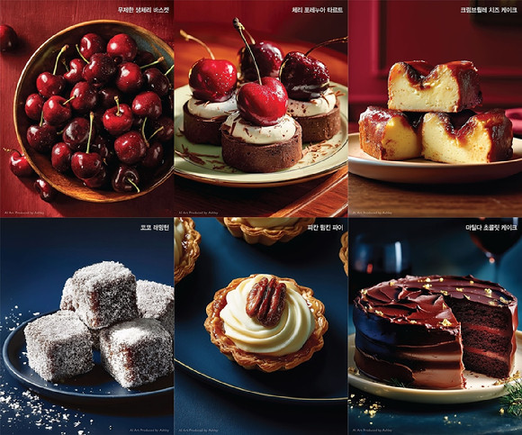 이번 디저트 뮤지엄은 하우스 오브 애슐리의 세계관 안에서 3대 모녀(캐서린–에블린–애슐리)의 디저트 취향을 모티프로 삼아 제작됐다. 생체리 무제한 제공을 비롯해 10종의 프리미엄 디저트가 준비된다. 대표 메뉴는 ▲무제한 생체리 바스켓 ▲체리 포레누아 타르트 ▲코코 래밍턴 ▲크림브륄레 치즈케이크 등으로 구성됐다.