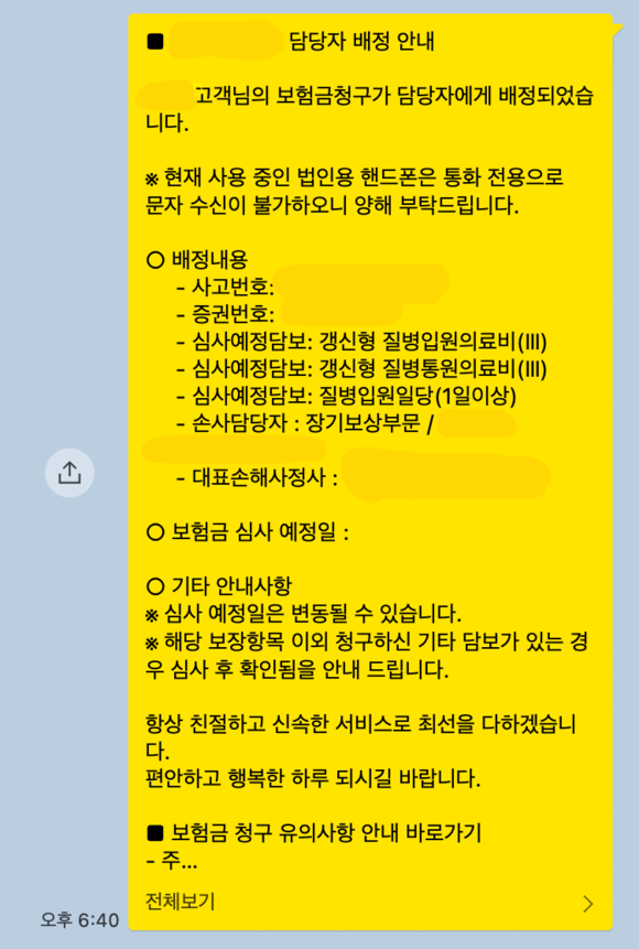 일부 보험사는 알림톡 등을 통해 소비자 선임권을 고지하고 있지만, 관련 정보가 화면 하단의 별도 링크를 통해 안내되고 있어 한눈에 파악하기 어렵다는 지적이 나온다.