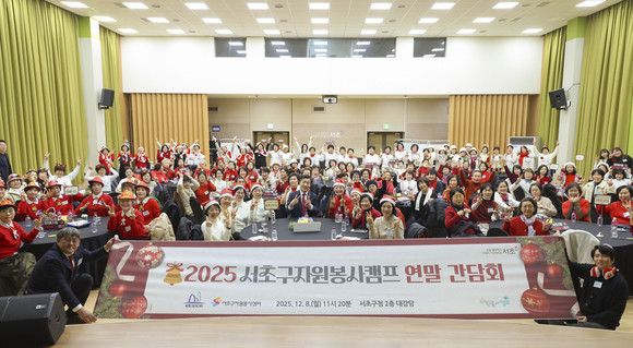 서울 서초구(구청장 전성수)는 8일 구청 2층 대강당에서 ‘2025 서초구 자원봉사캠프 연말 간담회’를 열고 생활 속 봉사와 나눔의 가치를 공유하는 시간을 가졌다고 밝혔다.