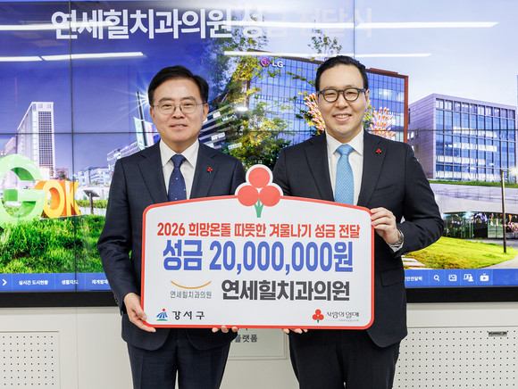 서울 강서구(구청장 진교훈)는 9일(화) 화곡3동 연세힐치과의원(대표원장 정현준)으로부터 이웃돕기 성금 2천만 원을 전달받았다.