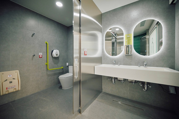 기능적으로도 혁신적인 요소가 다수 반영됐다. 내부에는 ▲밝고 따뜻한 색감의 조명 ▲불법촬영 방지 칸막이 ▲비상시 양방향 소통이 가능한 호출벨 등 범죄예방환경디자인(CPTED)을 적용해 안전성을 높였다. 또한 ▲유아·노약자 보호자 동반을 위한 가족 화장실 ▲자동 물내림 장치 ▲감염 예방용 조명형 거울 ▲이용자 편의에 맞춘 손잡이 등을 통해 누구에게나 편리한 공간이 되도록 했다.