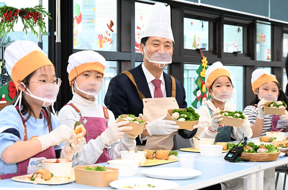 오 시장은 참석자들과 블록 누르기 세리머니에 참여한 뒤, 각 층을 둘러보며 아이들이 이용하게 될 시설을 점검했다. 이어 2층 키움센터에서 아이들과 함께 두부를 활용한 ‘저염쌈장 상추쌈밥’과 저염 간장으로 조리한 ‘볶은유부 꼬마김밥’을 만들며 자극적인 음식의 위험성, 성장기 올바른 식습관의 중요성에 대해 이야기 나눴다.