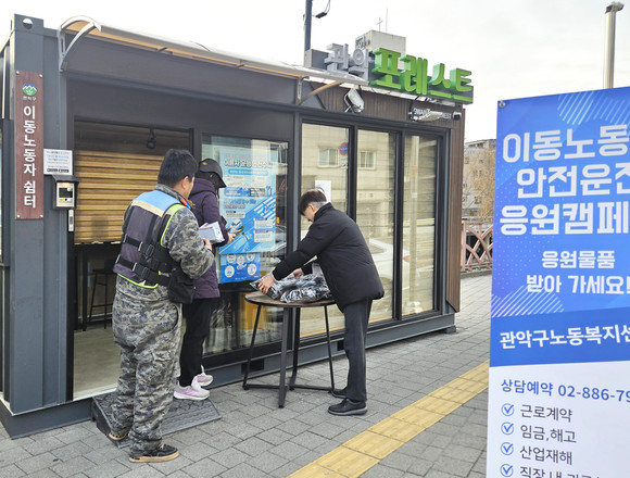 구는 오는 19일에도 관악 포레스트에서 혹한기 이동 노동자 안전지원 캠페인을 실시해 50명에게 방한용품을 추가 지급하고 배달 종사자의 겨울철 안전사고와 질병을 예방한다는 방침이다.