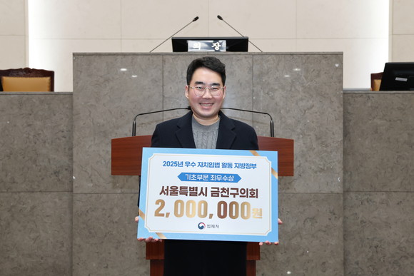 서울특별시 금천구의회가 18일 법제처가 주관한 ‘2025년도 우수 자치입법 활동 지방정부’ 선정에서 기초부문 최우수상을 수상했다. 이번 수상은 고영찬 금천구의원이 발의한 ‘청소년 건강·위생용품 지원 조례’가 우수조례로 선정된 데 따른 것으로, 금천구의회 출범 이후 최초의 법제처 최우수상이라는 점에서 의미가 크다.
