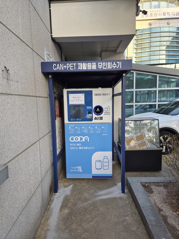 신규 설치된 무인회수기는 500밀리리터 투명페트병 500개, 300밀리리터 캔 500개 이상을 저장할 수 있는 용량을 갖췄다. 캔과 페트병을 동시에 수거할 수 있는 복합형 기기로, 실시간 정보 수집 기능을 갖춰 운영 효율성도 높다.