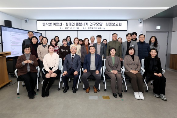 장순욱 대표의원은 “이번 연구는 흩어져 있는 돌봄 자원을 동작구 실정에 맞게 재구성해, 어르신과 장애인이 살던 곳에서 안정적으로 일상을 이어갈 수 있는 단절 없는 돌봄 체계를 마련하는 데 초점을 맞췄다”며 “연구 결과가 실질적인 정책으로 이어질 수 있도록 조례 제정 등 의회 차원의 입법 지원에 총력을 다하겠다”고 강조했다.