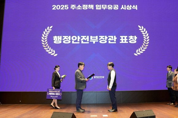 서울 중랑구(구청장 류경기)가 행정안전부 주관 ‘2025년 주소 정책 업무 유공’ 평가에서 서울시 자치구 중 유일하게 우수기관으로 선정돼 행정안전부 장관 표창을 받고, 특별교부세 4,000만 원을 확보하는 성과를 거뒀다.
