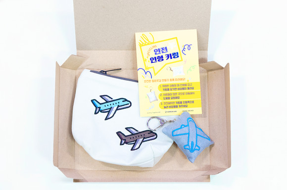 함께 기부된 파우치 역시 기내 테이블보와 폐유니폼을 활용해 제작됐으며, 장식용 비행기 패치를 더해 항공사 정체성을 담았다.