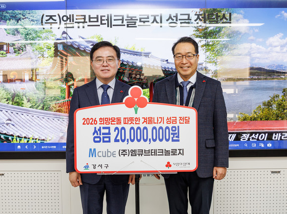 엠큐브테크놀로지는 지난해에도 성금 2천만 원을 기부하는 등 소외계층을 위한 선행을 꾸준히 실천해 왔다. 현재까지 누적 성금은 1억 500만 원에 달한다. 기부문화 확산에 힘쓴 공로로 강서구 기부자 명예의 전당에도 헌액된 바 있다.