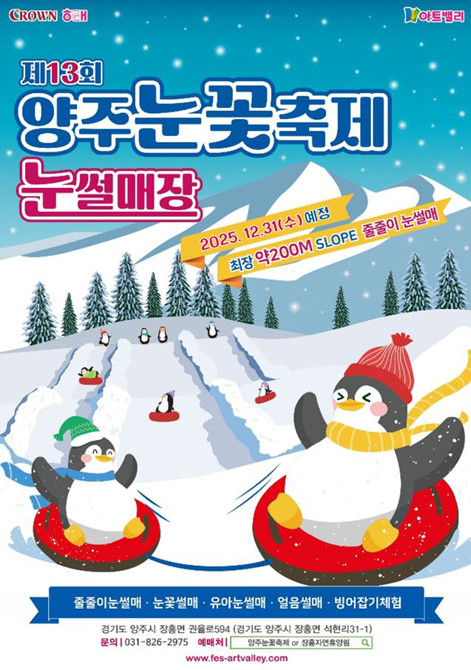 양주눈꽃축제 관계자는 “연간 10만 명 이상이 찾으며 꾸준히 사랑받아온 양주눈꽃축제가 올해는 신규 허니 썰매장과 펭귄 포토존 등 더욱 풍성한 즐길 거리로 돌아왔다”며 “경기 북부를 대표하는 겨울 축제답게 올 겨울에도 많은 관람객에게 특별한 겨울 추억을 전하길 기대한다”고 밝혔다.