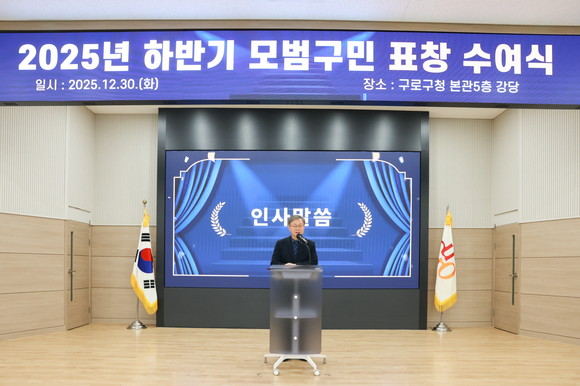 서울 구로구(구청장 장인홍)가 지난 30일 구청 5층 강당에서 ‘2025년 하반기 모범구민 표창 수여식’을 개최했다.