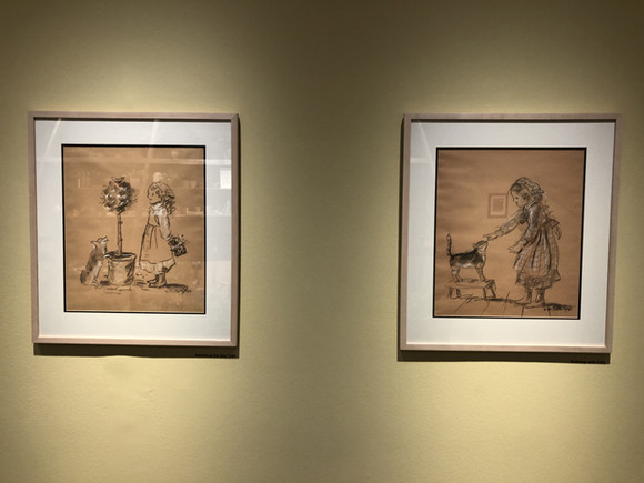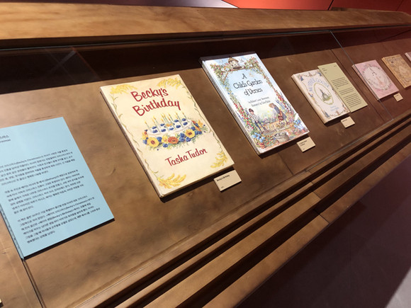 타샤 튜더의 다양한 저서과 삽화가 설치된 모습. 사진=김금영 기자