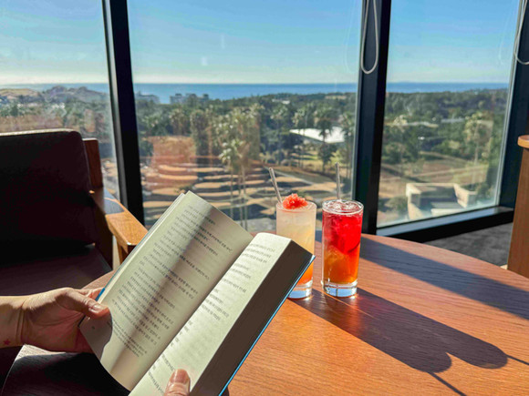 스타벅스 그랜드조선제주점에서 책과 칵테일 음료를 즐기는 모습. 사진=스타벅스